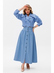 Юбка женская А-силуэта на широком поясе. По переду вертикальная застежка на кнопки в боковых швах действующие карманы.