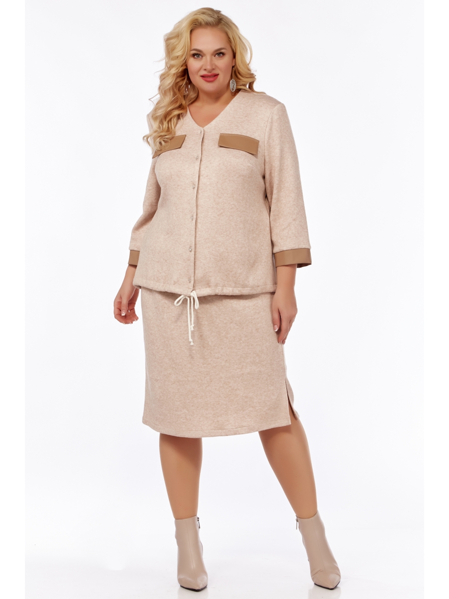 Джемпер с клапанами и манжетами из из экокожи. Застежка на петли ипуговици, по низу с затяжкой. Рукав втачной 3/4.
