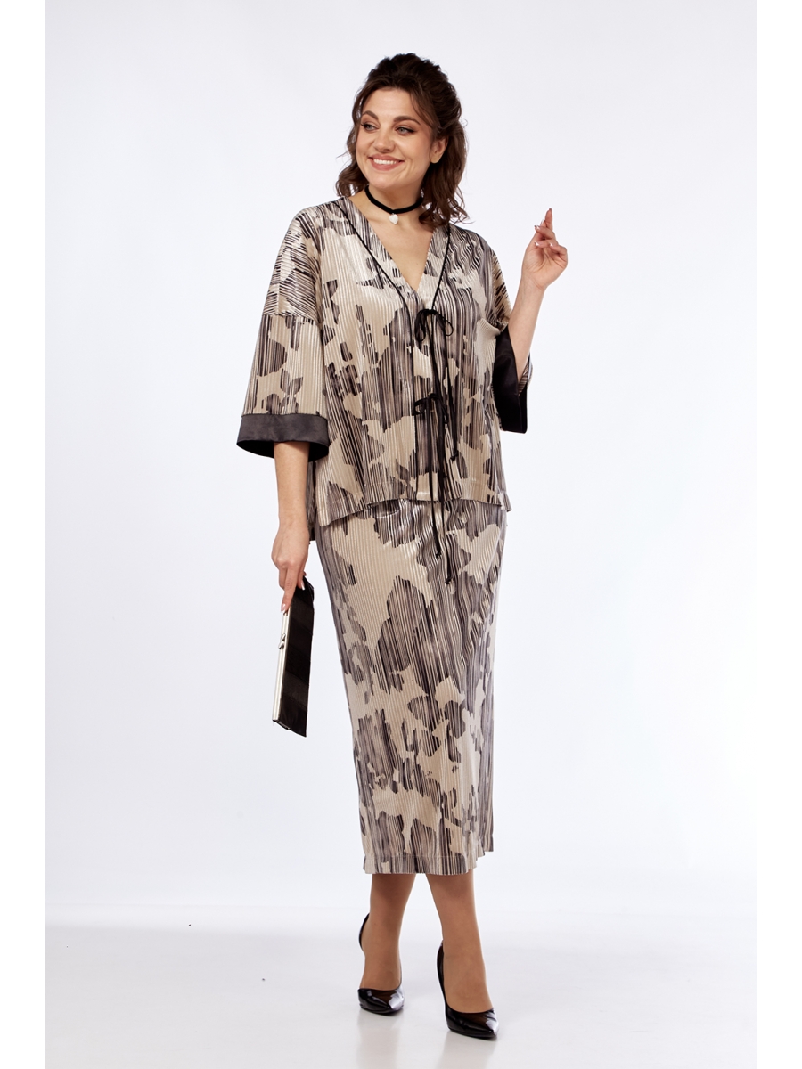 Костюм женский, нарядный выполнен из костюмно-плательной ткани, состоит из блузы и юбки.