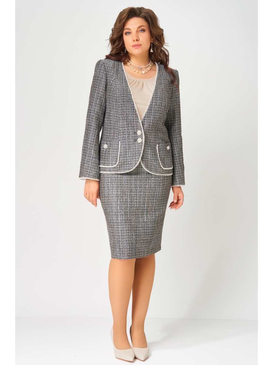 ""Ясиня"" — нарядная тройка, которая легко впишется в повседневность. Жакет, юбка и джемпер создают элегантный образ, подходящий как для торжеств, так и для рабочих будней. Стиль, комфорт и женственность — в каждой детали.