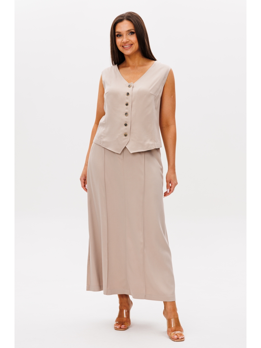Жилет полуприлегающего силуэта с центральной застёжкой и фигурным бортом. Полочка с боковым рельефом и нагрудной вытачкой. Спинка с центральным швом, боковым рельефом и талиевой вытачкой.