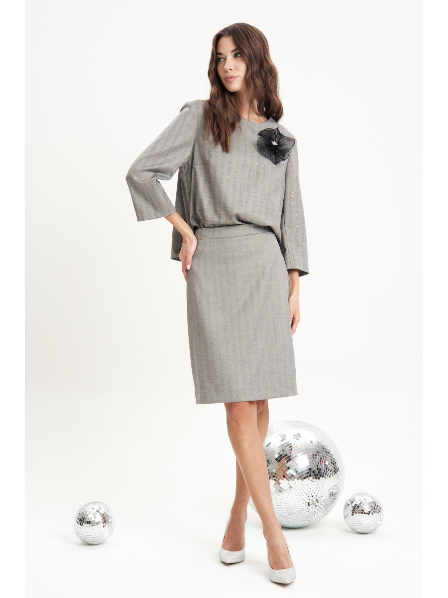 Комплект из невероятного, мерцающего полотна переплетения "ёлочка" или ломаная саржа. Верх из ткани с хаотичным вкраплением мерцающей пайетки, низ из одноимённого полотна без пайетки.