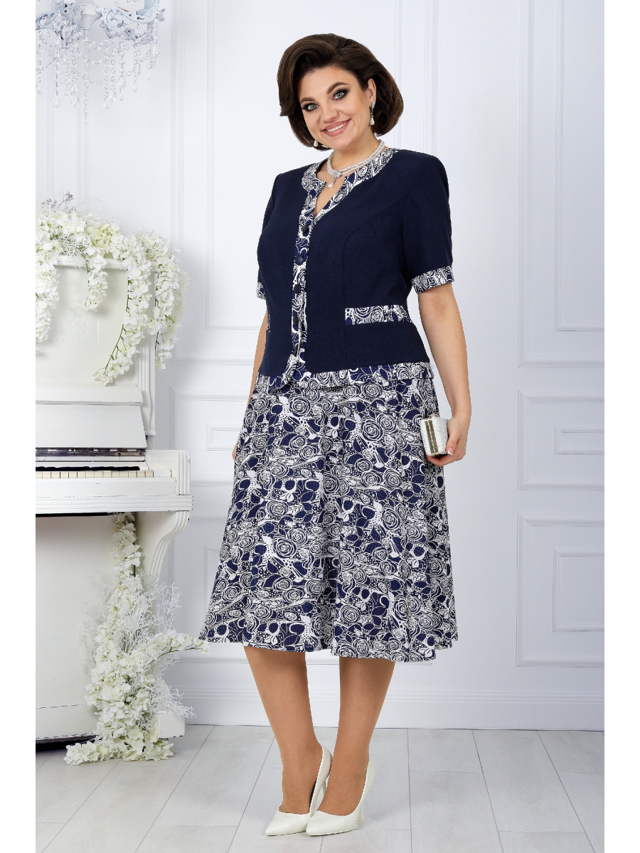 Представляем вашему вниманию элегантный женский костюм от NINELE — идеальный выбор для женщин больших размеров. Отделочные детали на передней части жакета и на манжетах рукавов выполнены из той же ткани, что и юбка, создавая гармоничное сочетание и завершая образ с изысканным акцентом. Этот костюм - классика белорусского трикотажа, который сочетает в себе элегантность и стиль. Он идеально подойдет для офиса, деловых встреч, или других особых случаев, когда вы хотите выглядеть стильно и утонченно.