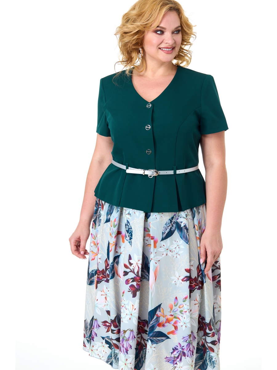Полуприлегающий силуэт жакета со стройными рельефами, притачной баской со встречными складками, v-образным вырезом горловины. Центральная застежка на пуговицы. Втачной, короткий рукав. Спинка с рельефами и средним швом.