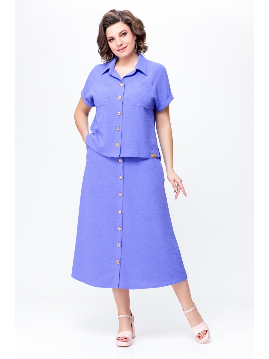 Костюм женский двухпредметный, состоит из блузы и юбки, выполнен из вискозной ткани с эффектом «жатка».