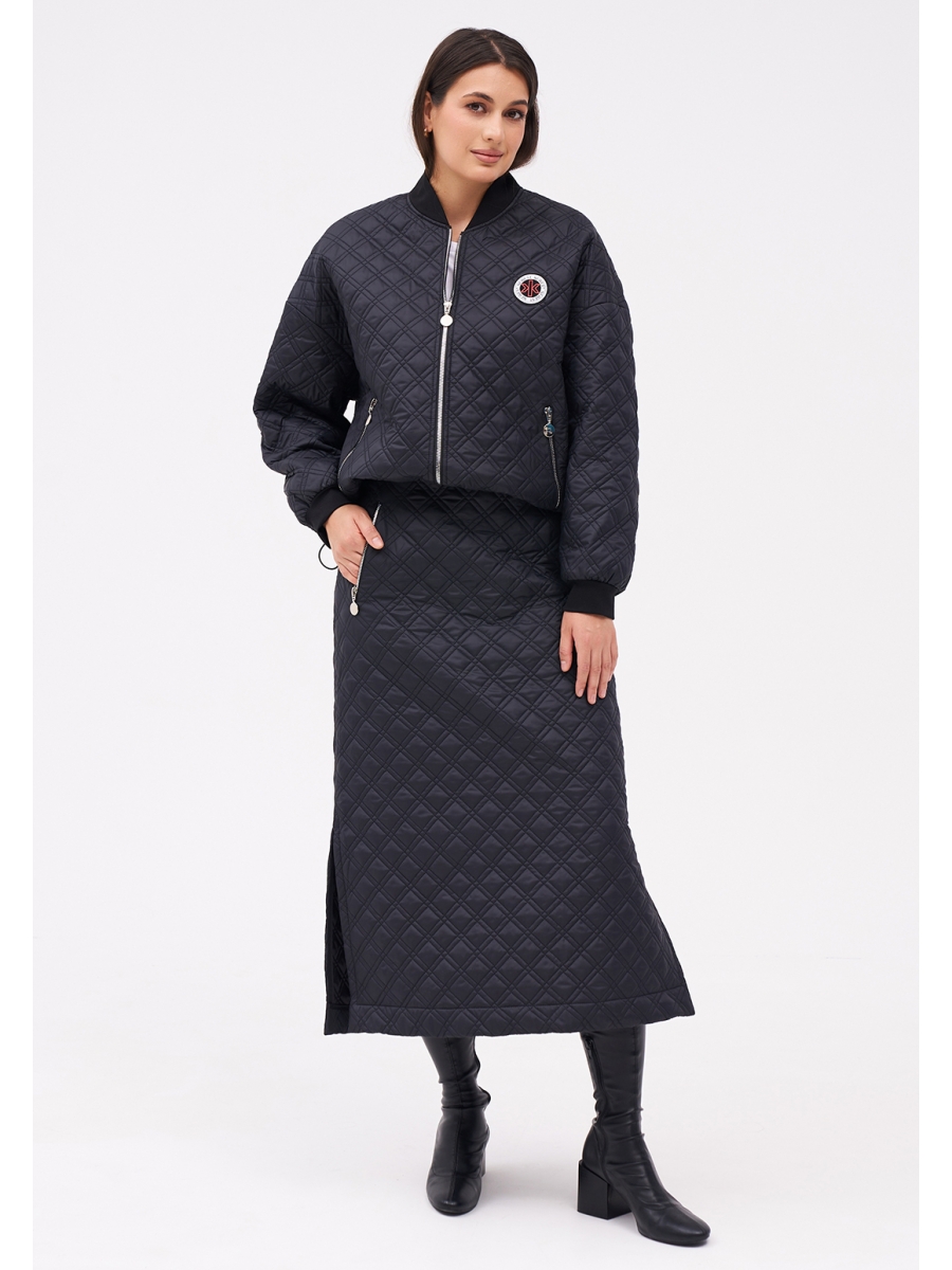 Комплект из стёганной плащёвки, состоящий из бомбера и юбки миди.