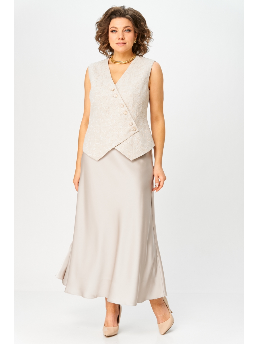 Стильный женский комплект: жилет по переду из жаккарда, спинка и юбка из однотонного атласа.