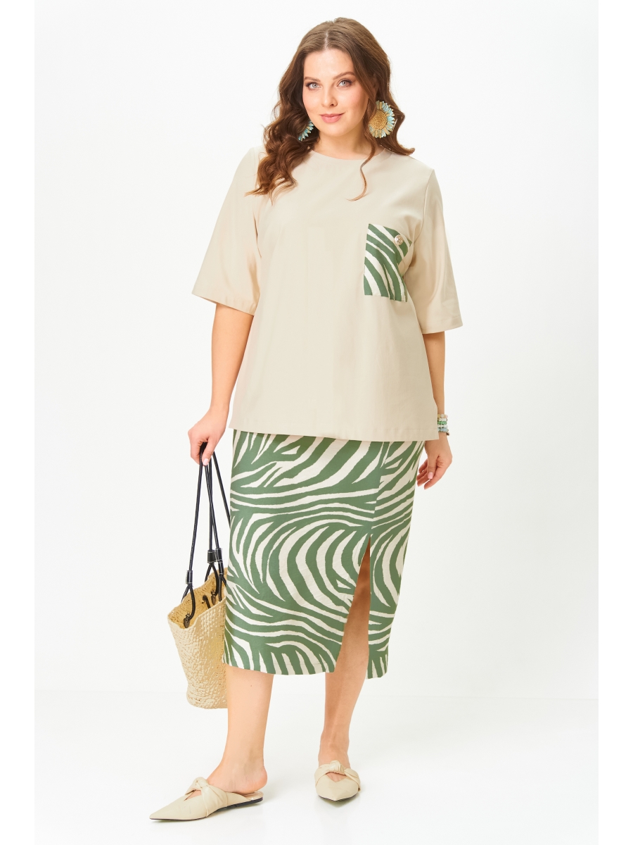 Юбочный костюм М200/1 оливково-кремовый, OVERYOU – купить с доставкой в Нижнем Новгороде на nizhny-novgorod.belpodium.ru