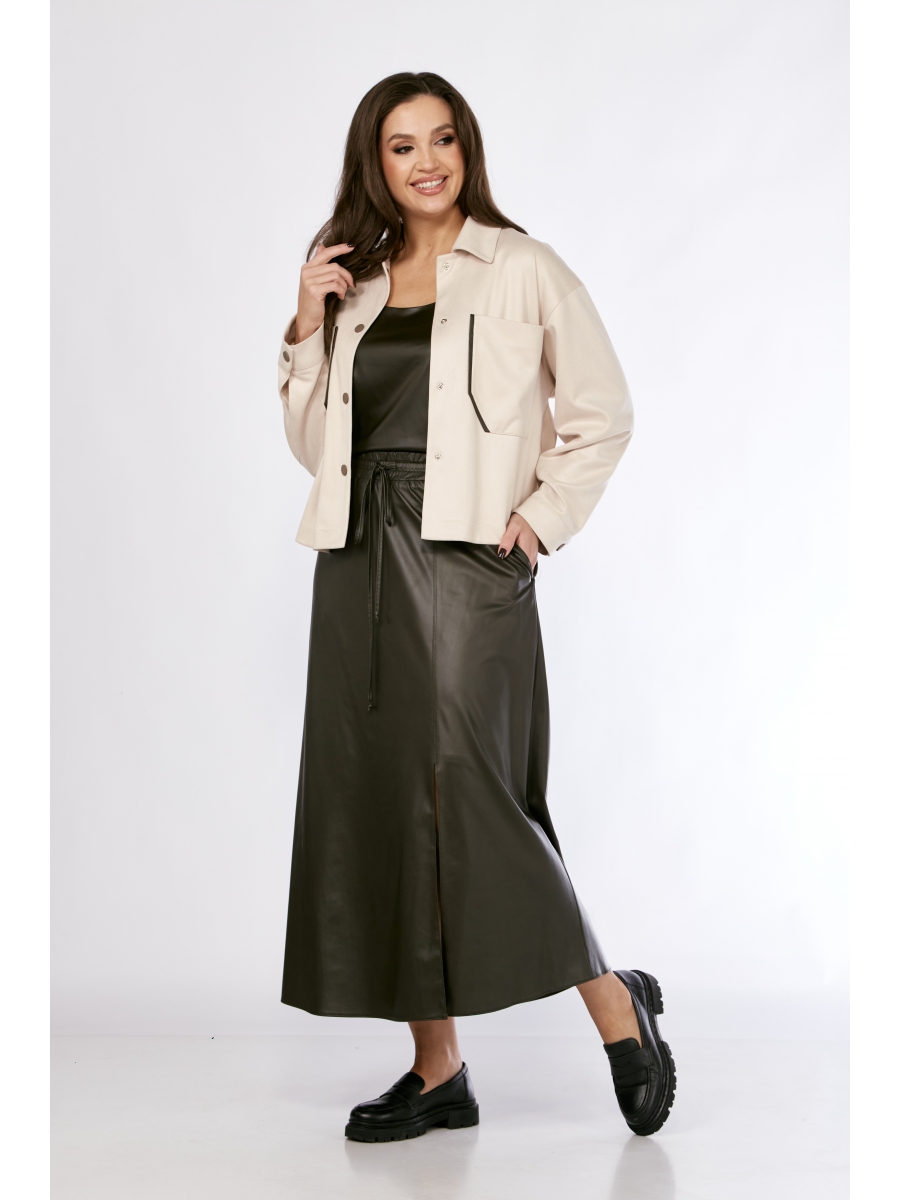 Юбочный костюм М-1314 бежевый/зеленый, Карина Делюкс – купить с доставкой в Нижнем Новгороде на nizhny-novgorod.belpodium.ru