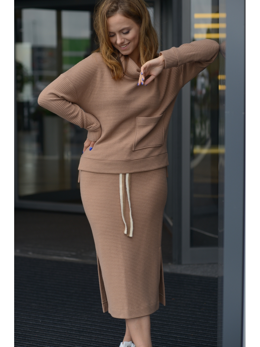 Костюм женский 2-ух предметный: джемпер и юбка, выполненные из трикотажного полотна.