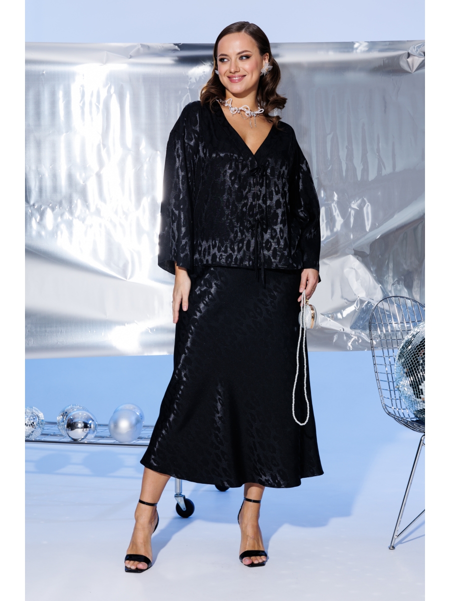 Нарядный женский костюм, состоящий из блузы и юбки, выполнен из легкой струящейся вискозы (не тянется).