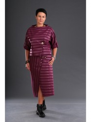 Комплект женский, состоящий из джемпера и юбки из трикотажной ткани, дизайн кожаная полоска.