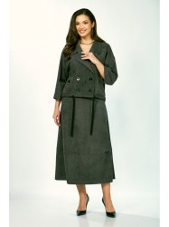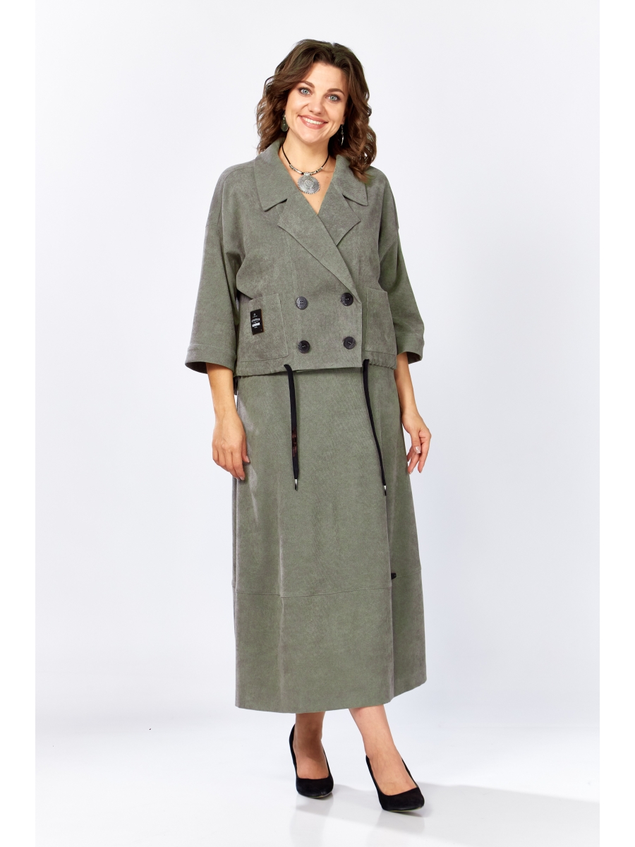 Костюм женский, состоящий из жакета и юбки из мягкой штруксовой ткани без подкладки в красивом серо-фисташковом оттенке.