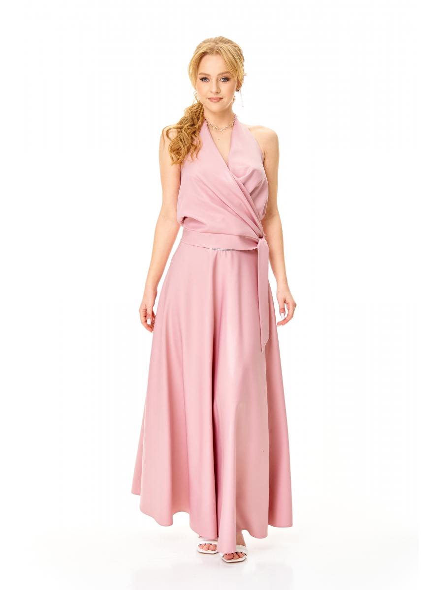 Топ закрывает перед (с переходом на шею), спинку, но оставляет открытыми плечи. Передняя часть топа с мягкой драпировкой на «запах». Притачной пояс завязывается справа. Верх спинки с эластичной тесьмой.