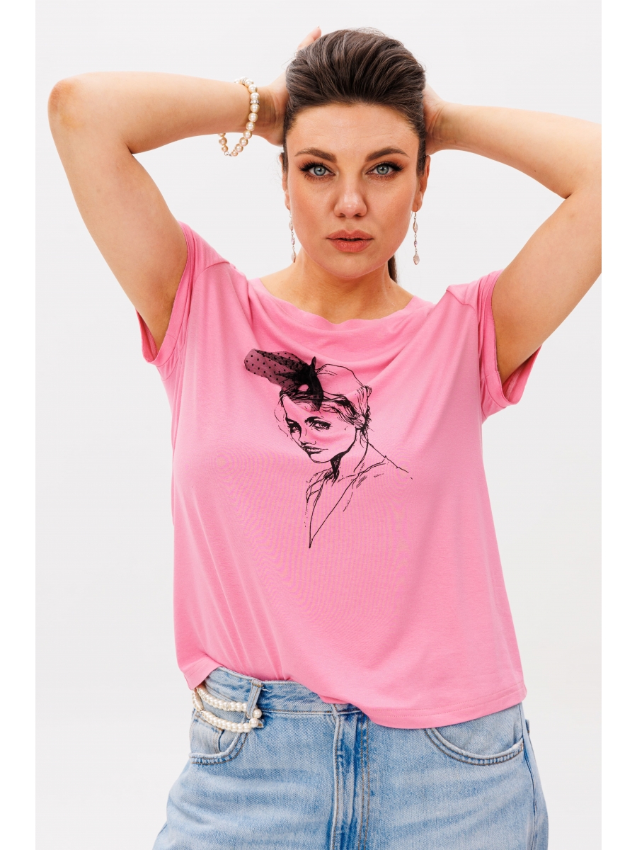 Эта футболка от Анелли — идеальный баланс повседневности и изысканности. Прямой силуэт умеренного объема создает комфортную основу, а изящный принт с изображением леди и объемным бантом из сетки добавляет нотку игривого шика.