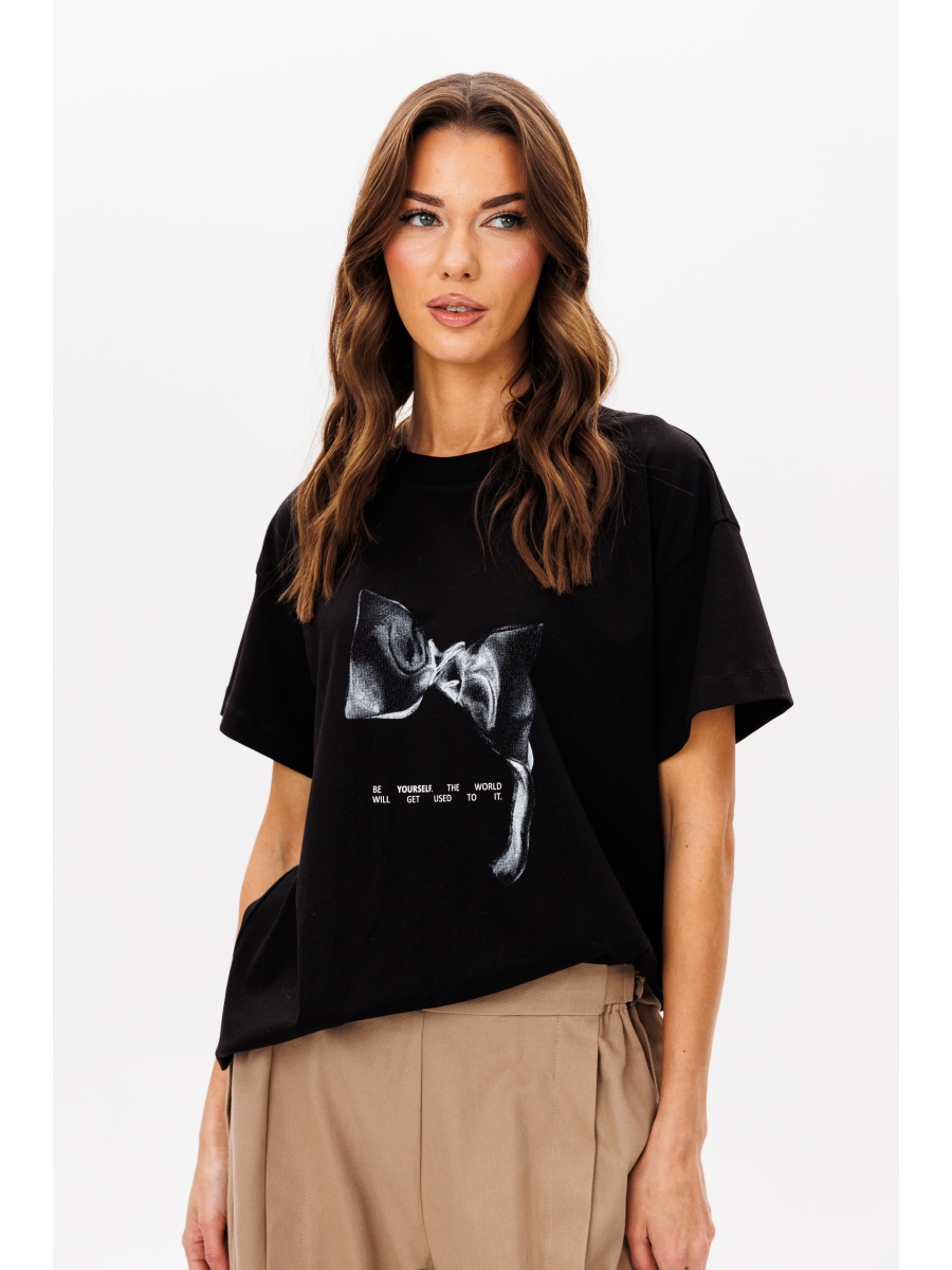 Базовые футболки - это конечно хорошо, но что делать, если хочется привнести в образ яркости, иронии и немного артистизма? Лучший способ выразить себя - выбрать вариант с классным говорящим принтом. Футболка классического кроя с втачным рукавом.