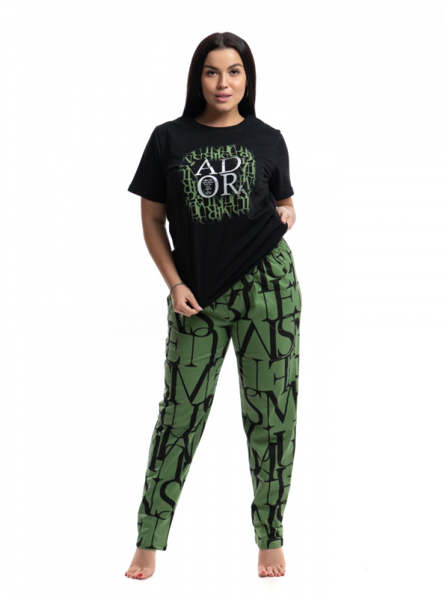Брюки прямые чуть заужены к низу, пояс на эластичную резинку, внутренние карманы.