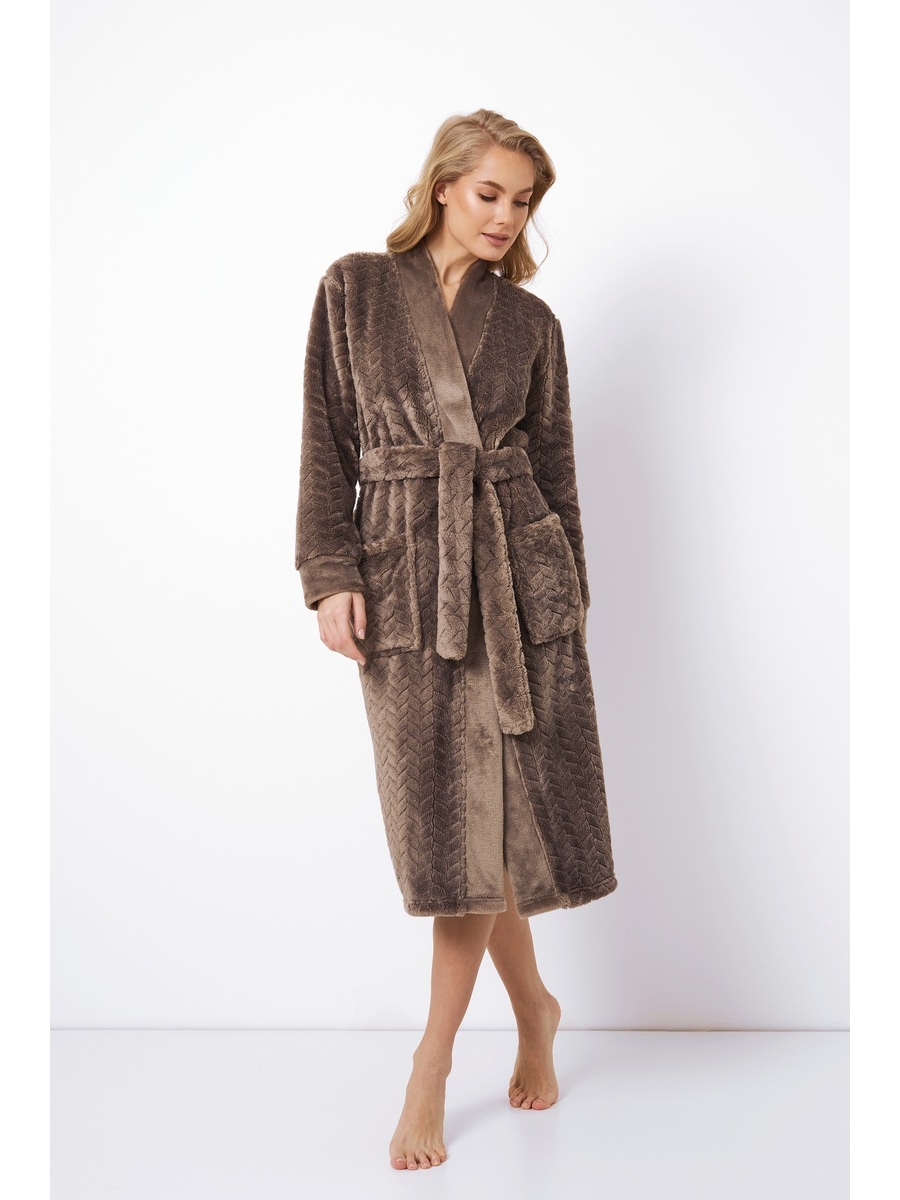 Холодный и ветренный вечер… Что может быть лучше, чем теплый и мягкий халат? Халат Мабл сделан из мягкой фактурной ткани с текстурным узором, которой отлично дополняет классический фасон халата. Манжеты и воротник халата выполнены из гладкой флисовой ткани. Халат с карманами завязывается на талии поясом, а так же на дополнительную внутреннюю завязку на талии для удобства ваших движений. Длина - ниже колена.