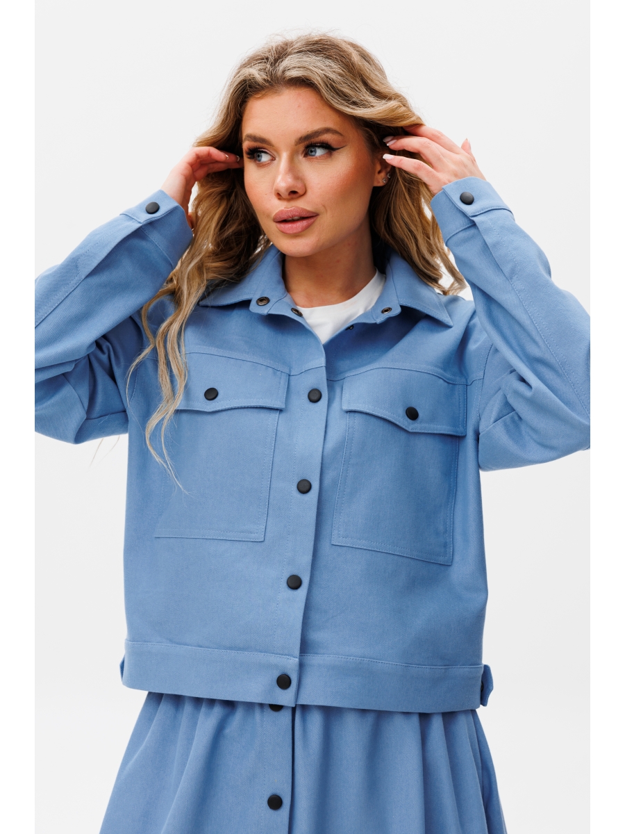 Оформить заказ →Джинсовый жакет свободного силуэта с застежкой по переду на кнопки. Воротник отложной. По переду отрезные кокетки, накладные карманы с клапанами. По спинке кокетка и рельефы. Рукав двухшовный с притачной манжетой на кнопках. Низ жакета на притачном поясе.