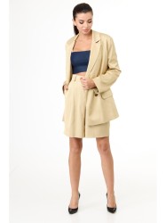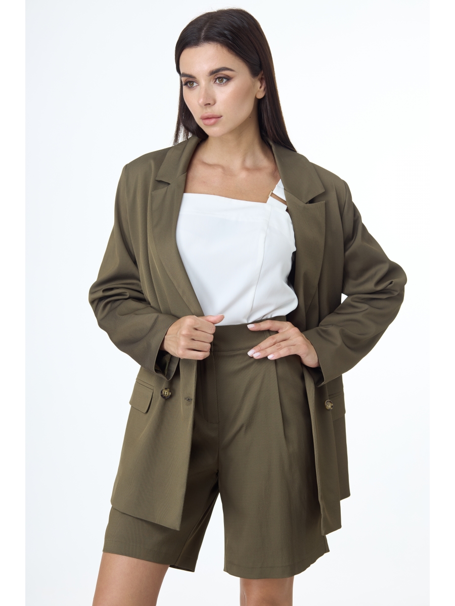 Жакет прямого силуэта, двубортный с отложным воротником и лацканами. По переду функциональные карманы с клапанами. Втачные рукава. Спинка со средним швом. Выполнен на подкладке.