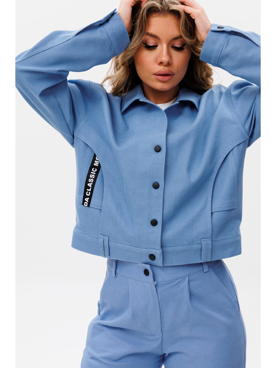 Оформить заказ →Жакет женский прямого силуэта с имитацией перевернутых брюк. На правой полочке по переду настрочена декоративная тесьма. Рукав длинный на манжете. По переду застежка на кнопки.