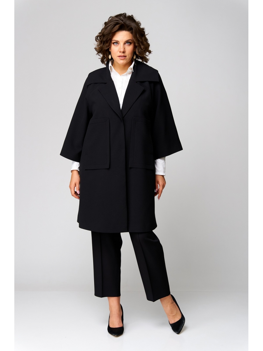 Оформить заказ →Нарядный удлиненный женский жакет на подкладке из стрейчевой ткани средней плотности с добавлением вискозы. Нарядность жакету придает фактура ткани - рубчик по диагонали. Силуэт расширенный к низу, по переду центральная застежка на 2 кнопки. Оригинальность жакету придает модный элемент - большой воротник с лацканами меньшего размера, а также большие накладные карманы. Рукав реглан длиной 7/8.