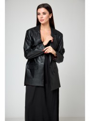 Однобортный жакет из экокожи с мужского плеча не собирается сдавать свои позиции. Внимание привлекают две шлицы и ассиметричная спинка. В нашем жакете Красивая принтованная подкладка - это внимание к деталям. Чёрный цвет не всегда про строгость.