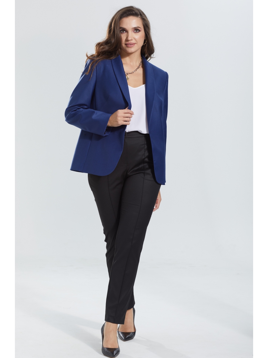 Оформить заказ →Жакет женский полуприлегающего силуэта на центральной застёжке в области талии на потайной крючок. Перед с рельефом от проймы до низа, в котором выполнен карман и наклонной нагрудной вытачкой от рельефа. Спинка со средним швом и рельефом из проймы до низа. Горловина v-образной формы с шалевым воротником. Рукав втачной двухшовный длинный. Жакет на полной подкладке.