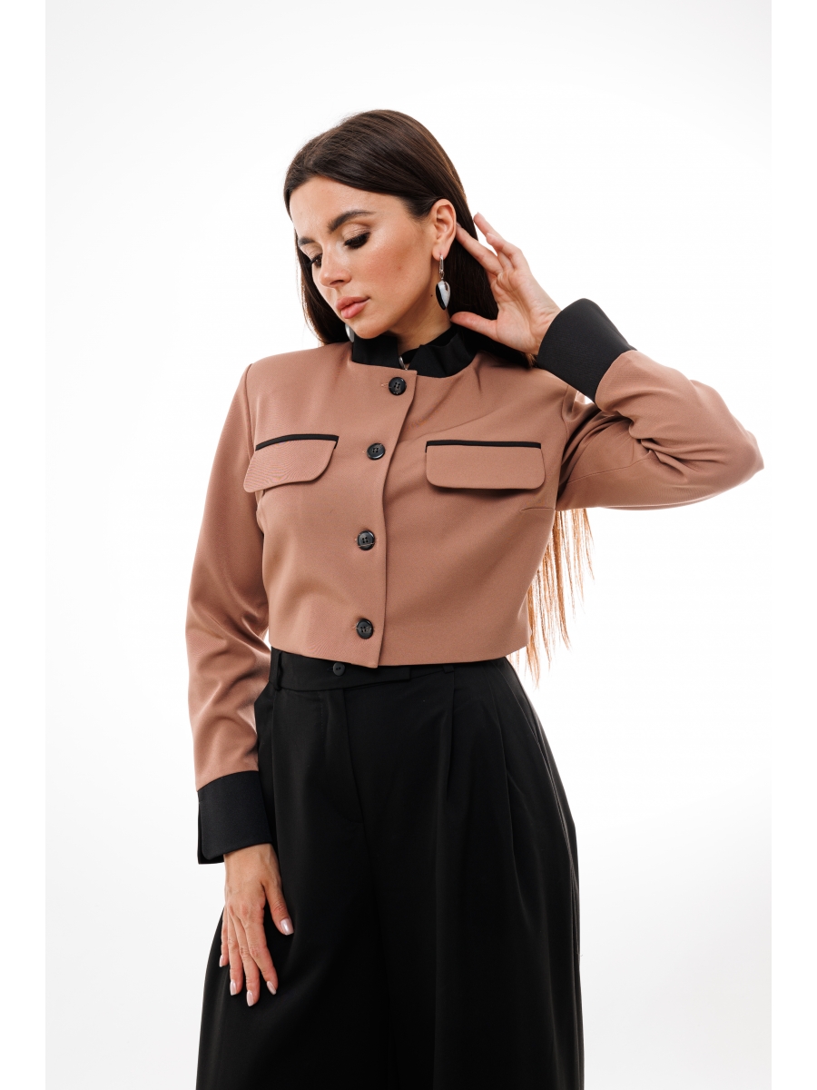 Жакет имеет модный силуэт, который подчеркнет вашу фигуру, а его длина до талии придаст вам изысканность и шарм. Втачные рукава с манжетами добавляют нотку классики, а фигурная стойка горловины придает изделию особую изящность.