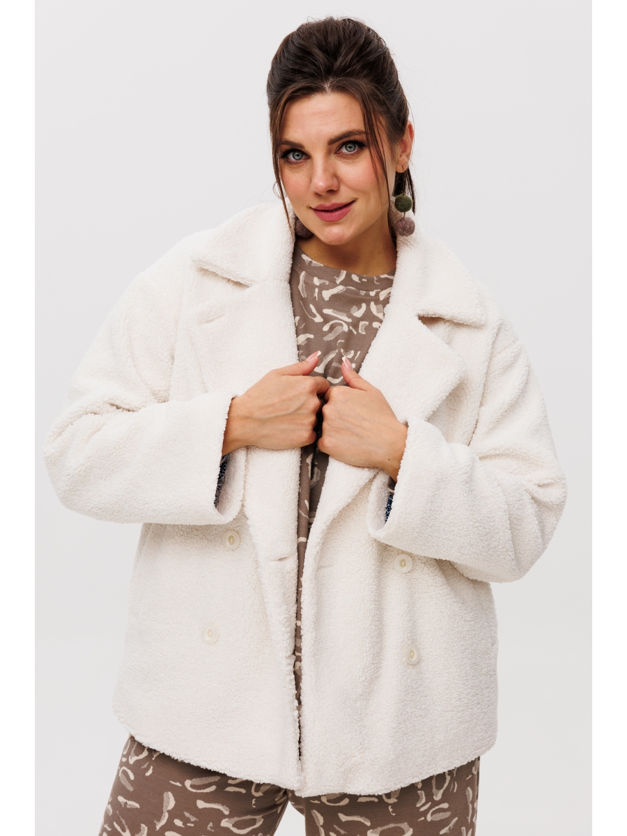 Этот белый жакет - настоящая находка для современной леди, которая ценит стиль и комфорт. Изготовленный из высококачественного мягкого материала, он обладает пушистой текстурой, которая придает ощущение невероятного комфорта. Его короткий крой добавляет жакету нотку современности, а подкладка с принтами овечек придает ему неповторимый шарм. Этот жакет идеально дополнит образ леди с машиной, создавая стильный и элегантный вид, подходящий как для повседневной носки, так и для особых случаев. Белый цвет и оригинальный дизайн делают его универсальным элементом гардероба, который будет привлекать восхищенные взгляды.