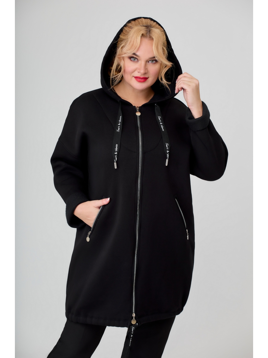 Оформить заказ →Жакет женский прямого силуэта. Линия плеча спущена. На передних деталях обработаны прорезные карманы на молнии. Застежка жакета на молнию, рукав с отложной манжетой. По горловине капюшон на кулисе. По спинке – аппликация. Низ спинки жакета фигурной формы, на кулисе.