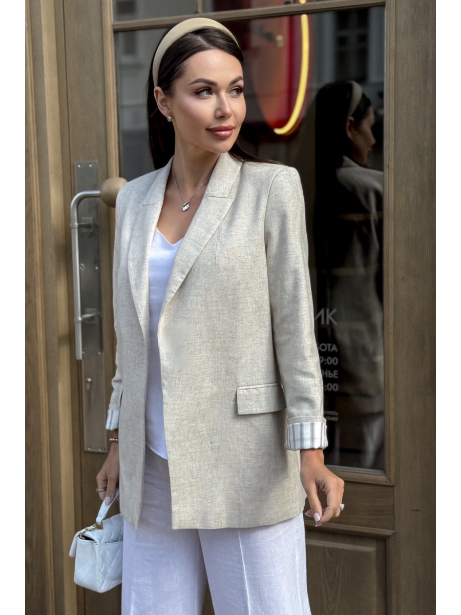 Эффектный летний жакет из льняной ткани станет великолепным дополнением вашего гардероба. Этот жакет отлично сочетается с различными вариантами одежды, он отлично смотрится с узкими брюками и джинсами, прямыми юбками или длинными платьями из легкой ткани.