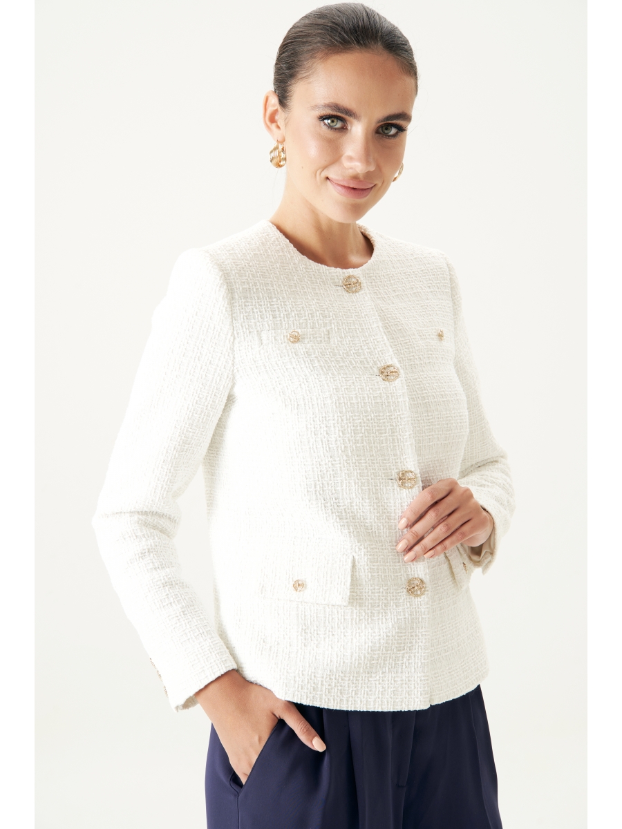 Белый твидовый жакет в стиле шанель – это воплощение элегантности и классики. Изготовленный из твида, он подчеркивает статус и изысканный вкус своего обладателя. Носите жакет в паре с любимыми джинсами, создавайте стильные образы с юбкой-карандаш или отдайте предпочтение маленькому черному платью – с чем бы вы его не сочетали, этот жакет станет вашим верным спутником на пути к успеху и гармонии. Жакет женский прямого силуэта, на подкладке. Жакет - нарядный.