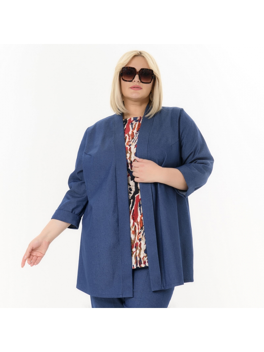 Жакет прямого силуэта из хлопковой ткани. Рукав 3/4. По бортам и низу рукавов притачные отвороты.