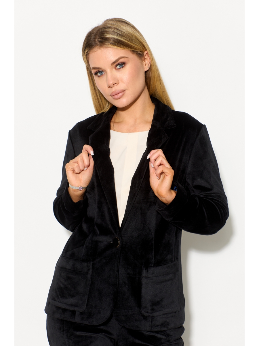 Пиджак женский полуприлегающего силуэта, выполнен из трикотажного полотна с коротким ворсом, эластичное, мягкое и приятное на ощупь. Пиджак из такого материала великолепно согреет вас до самой глубокой осени. Перед изделия с бортовой застежкой на одну пуговицу, закругленной линией борта и воротником пиджачного типа. Спинка со средним швом и двумя рельефами. Изделие с накладными карманами. Деловой пиджак на полном подкладе. Рукава вточные двухшовные. Офисный пиджак держит форму и не мнеться. Пиджаки, жилеты и жакеты-хит сезона на 2024-2025 год. Теплый пиджак расчитан на все сезоны (зима, весна, осень) и придаст образу индивидуальность. Пиджак однобортный для женщин высокого и не высокого роста.