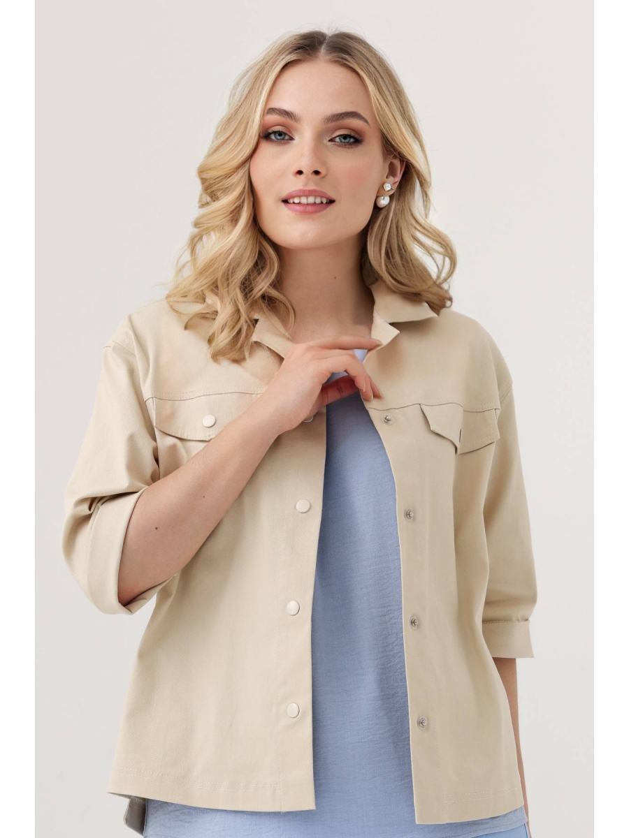 Стильный жакет свободного силуэта с клапанами - имитация кармана. Застежка - пуговицы. Жакет представлен до 52 размера с акцентом на комфорт для любого типа фигур.