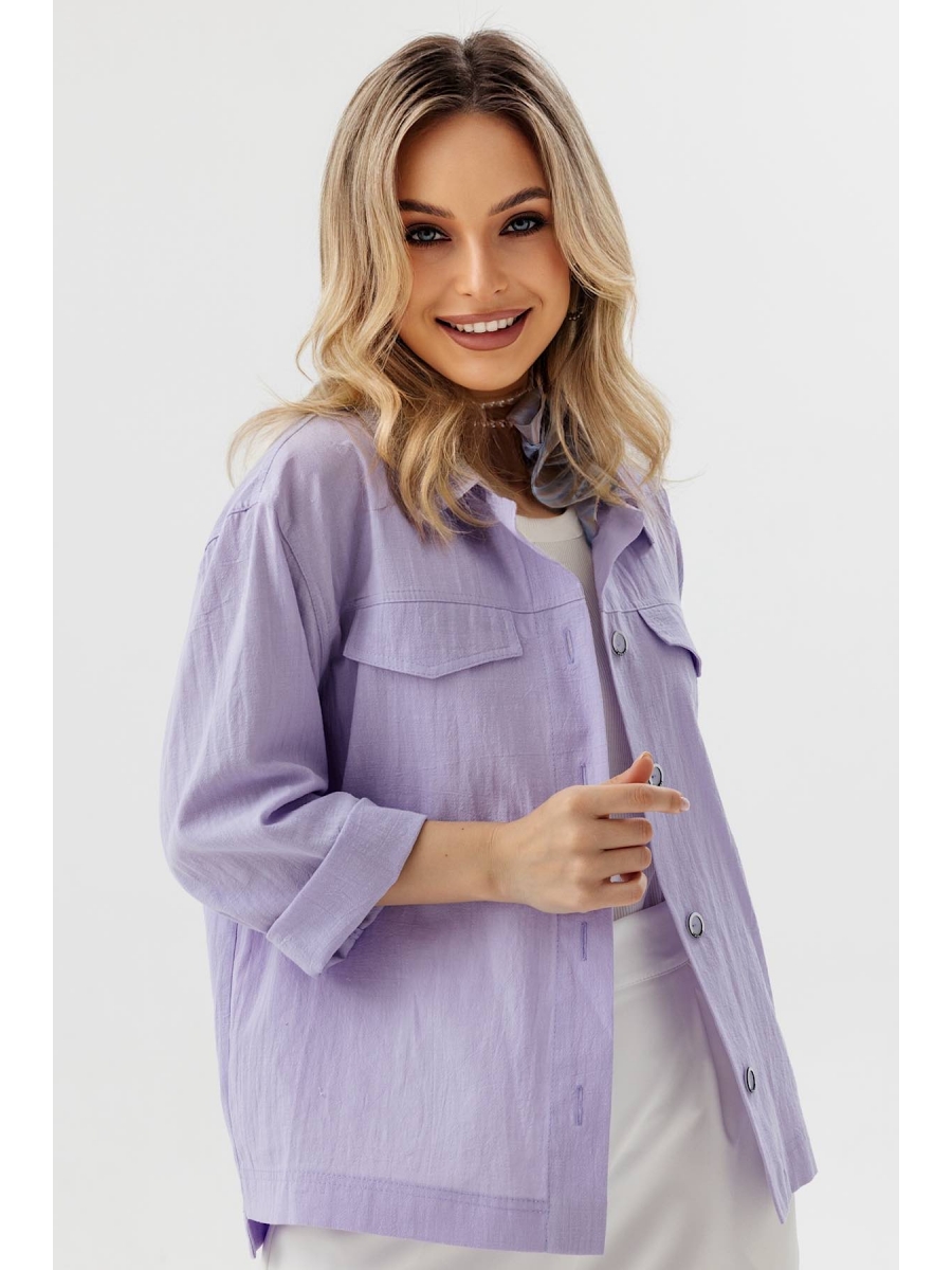 Стильный жакет свободного силуэта с клапанами - имитация кармана. Застежка - пуговицы. Жакет представлен до 52 размера с акцентом на комфорт для любого типа фигур.