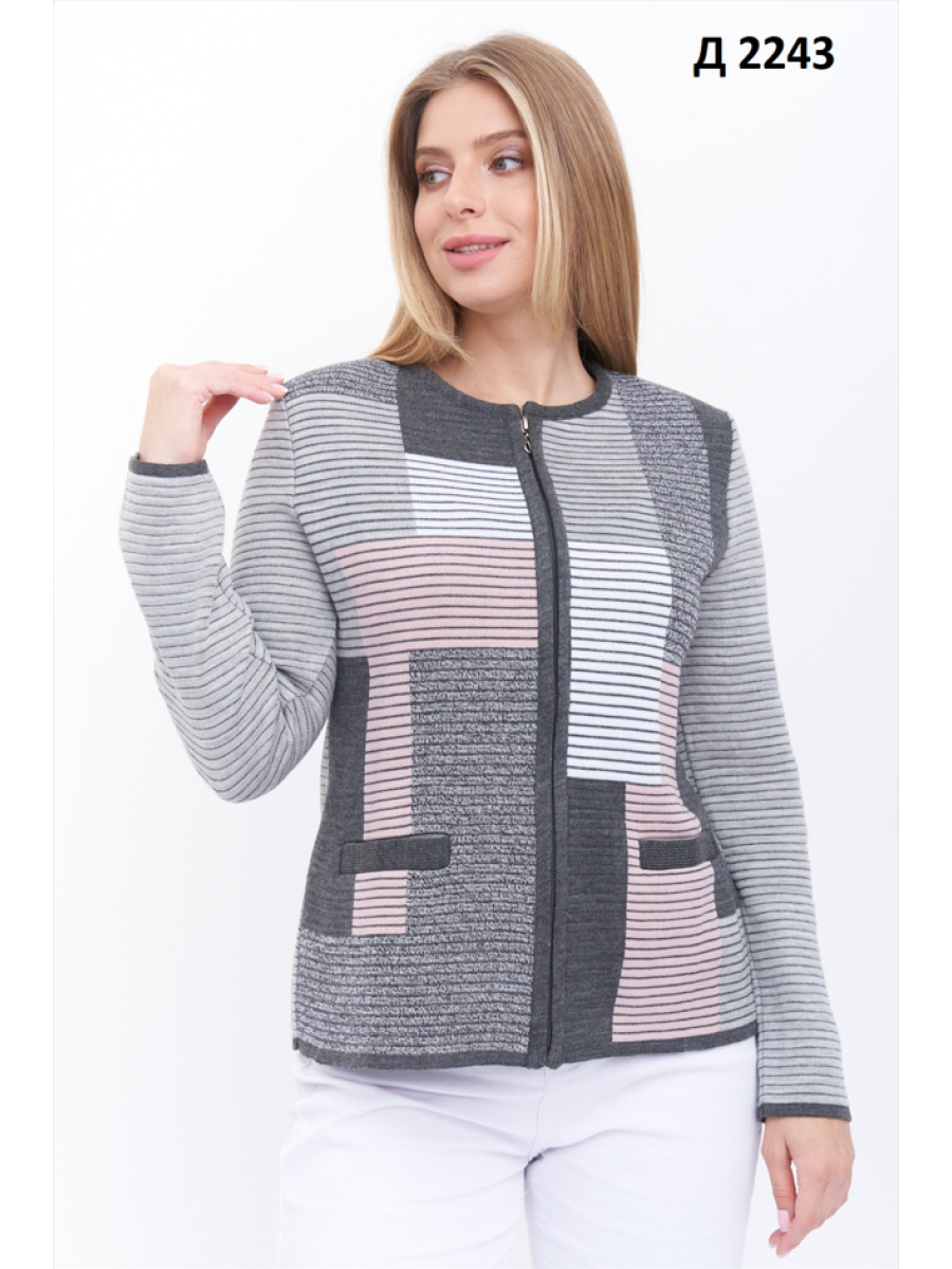 Жакет вязаный женский. Его полотно имеет горизонтальную рельефность. Благодаря этому жакет не вытянется после стирки.