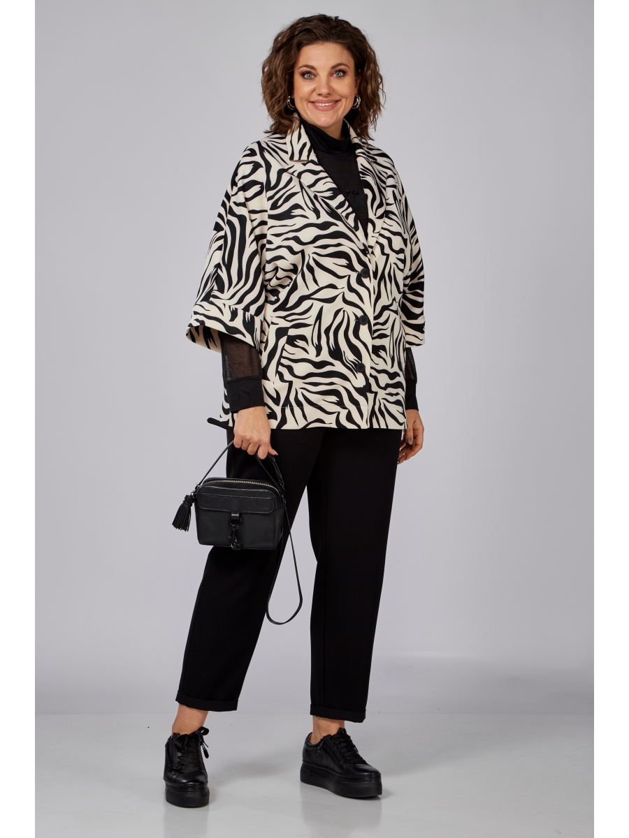 Оформить заказ →Жакет полуприлегающего силуэта, длиной до линии бедер с цельнокроеными рукавами. Жакет с центральной застежкой на три петли и пуговицы. Перед с боковыми прорезными карманами с листочкой. Спинка со средним швом. Рукава, укороченные с манжетой. Воротник пиджачного типа.