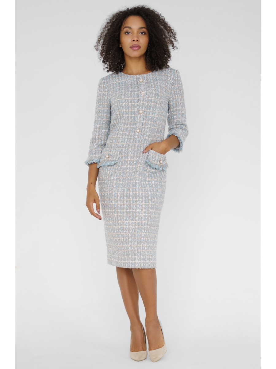 Лаконичный фасон и женственность – две важные особенности. Именно этими словами можно охарактеризовать это платье в стиле Шанель, которое будет актуально всегда. Платье женское, полуприлегающего силуэта, на подкладке, для повседневной носки.