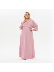 Платье длинное, романтичное, с глубоким V - вырезом, из эластичного плательного крепа, полуприлегающего силуэта. Под линией груди подрез.