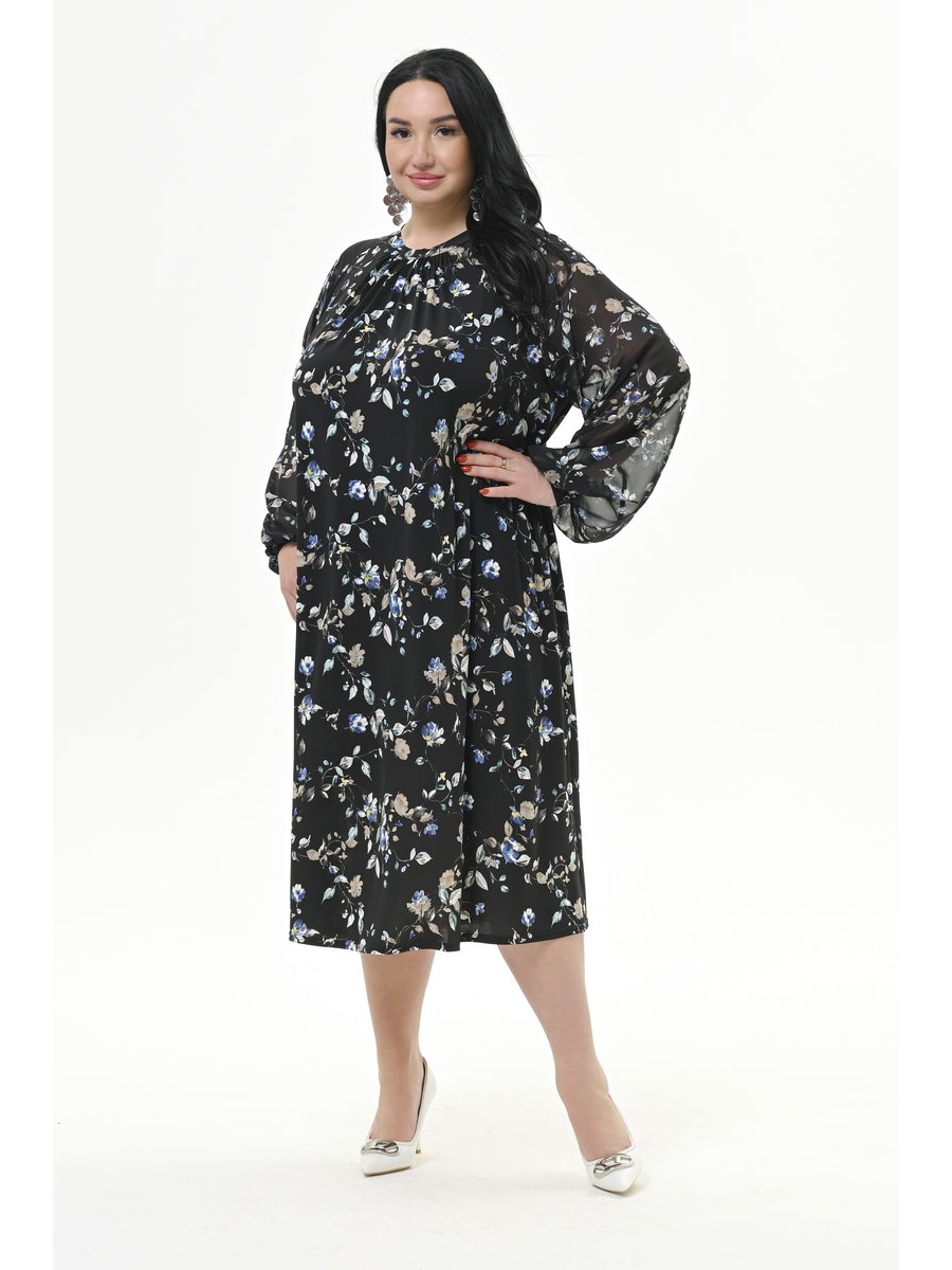 • Название: Платье комбинированное, масло/шифон, черное с бирюзовыми цветами
