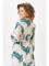 885.2 бежевый принт «ярко-голубые и белые листья»