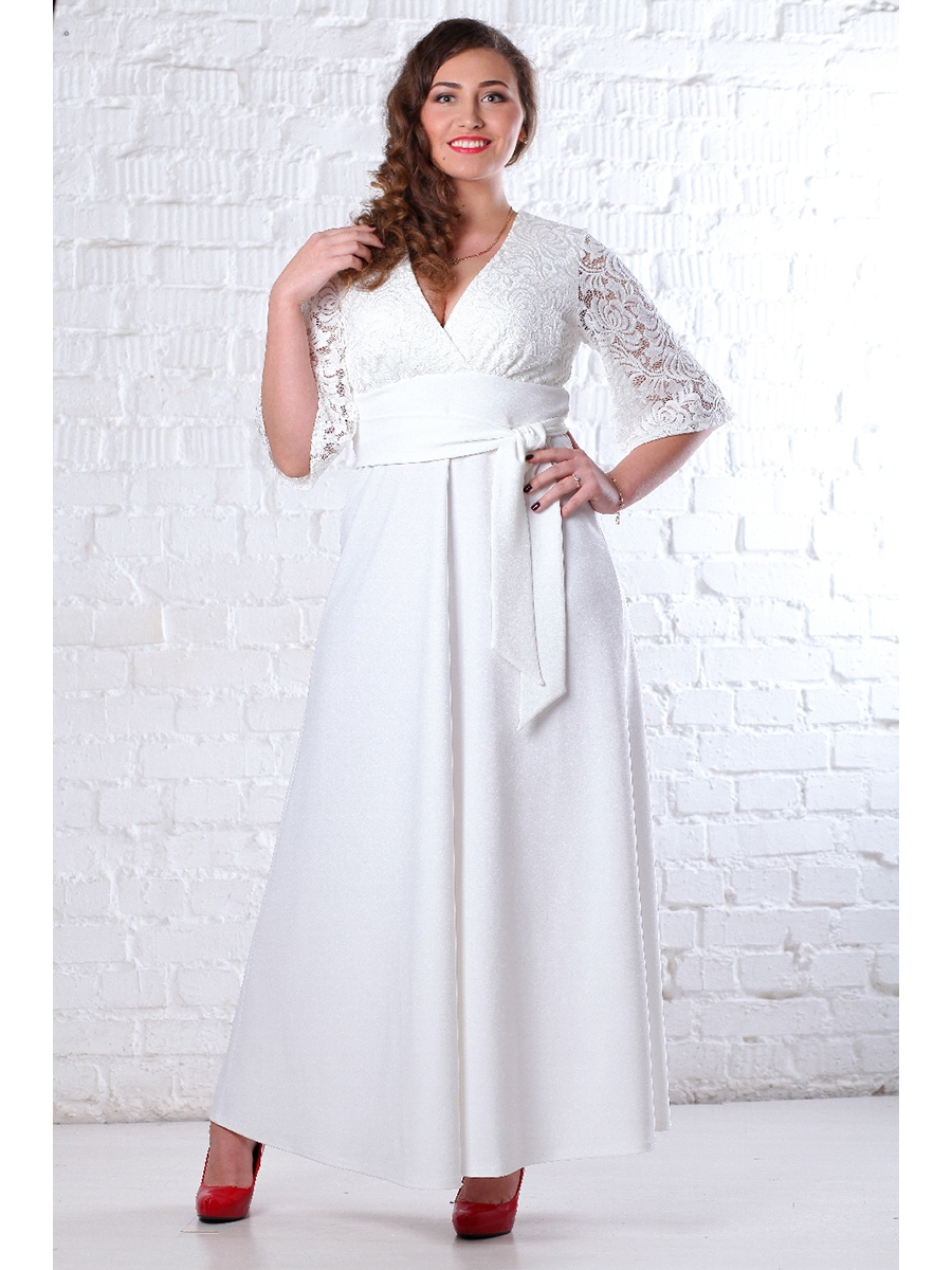 Элегантное длинное вечернее платье из крепа с эластаном с кружевом и рукавом 3/4. Прекрасное платье для вашего торжества.