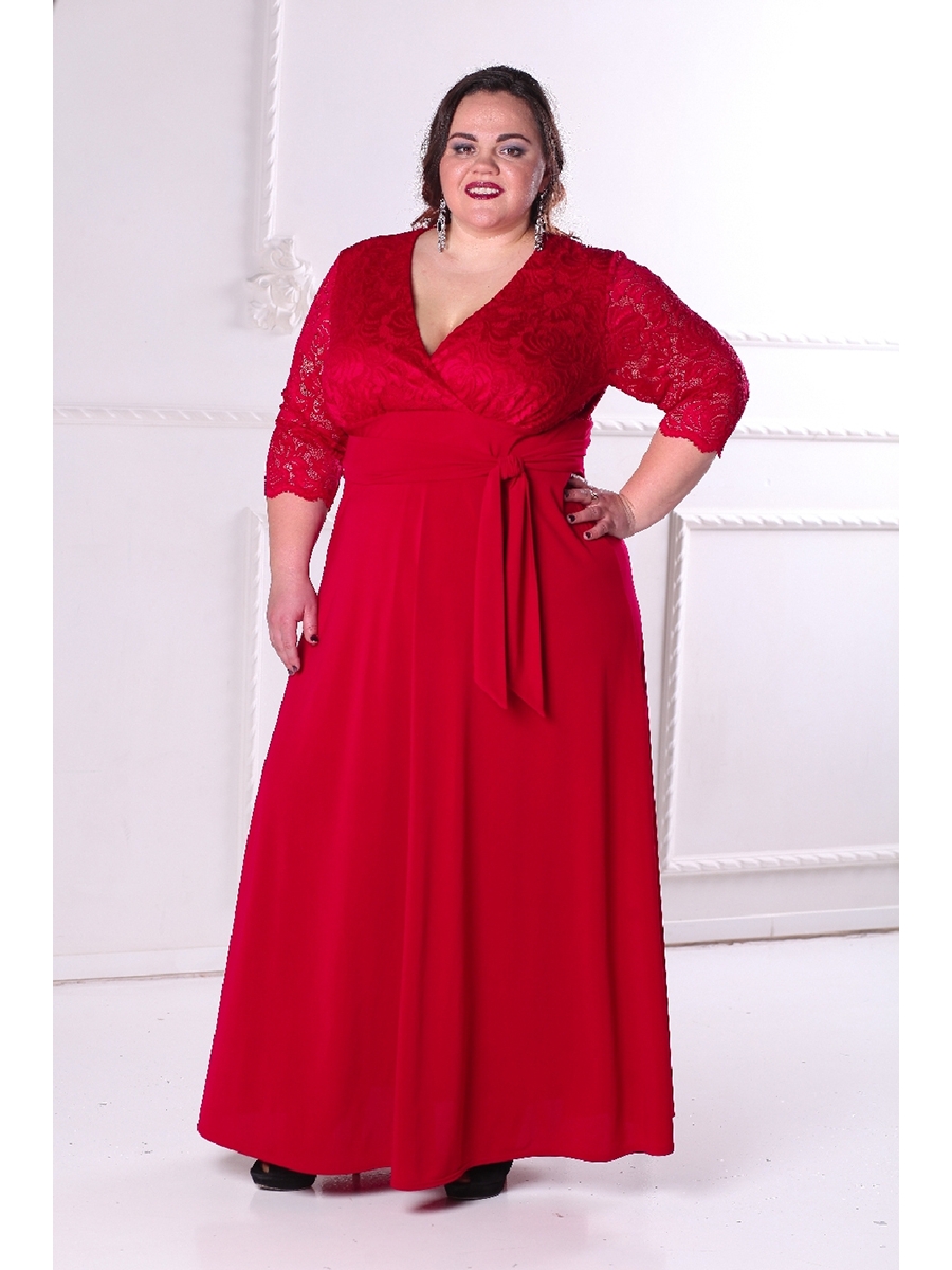 Элегантное длинное вечернее платье из легкого трикотажа с кружевом и рукавом 3/4.