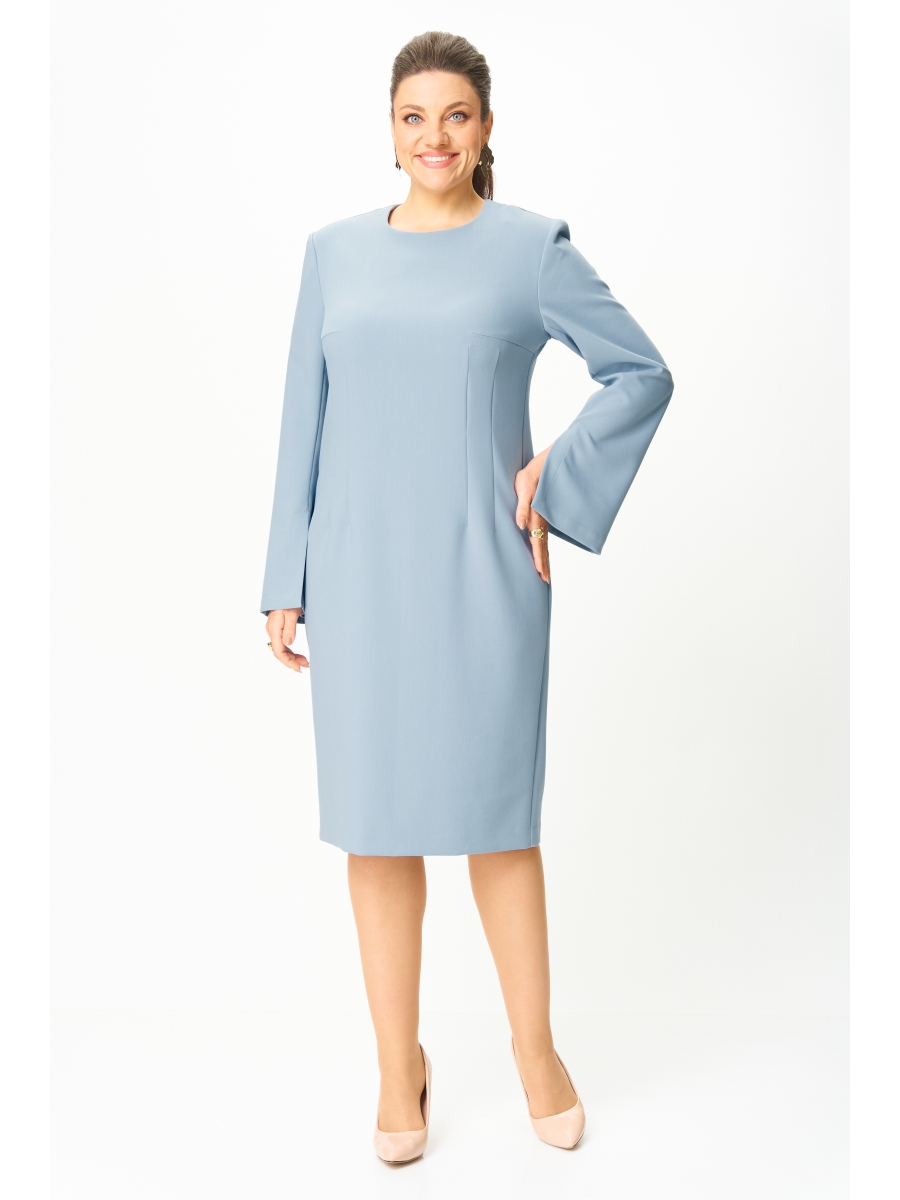 Элегантное женское платье, прилегающего силуэта: по переду и спинке вытачки по талии. Горловина круглая. Застежка на молнию в центральном шве спинки. Рукава втачные, двухшовные, расширенные к низу, в переднем шве, по низу, разрез.