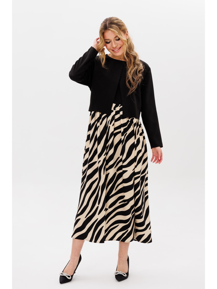 Оформить заказ →Платье женское свободного силуэта с имитацией накидки. Платье отрезное по линии талии. Верхний лиф на запах по переду, и нагрудной вытачкой. Вырез горловины круглый, по спинке застежка на потайную молнию. Юбка на сборке по талии.