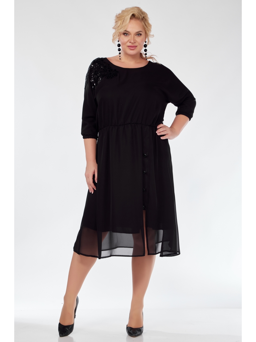 Оформить заказ →Платье женское свободного силуэта,выполнено из шифона, с цельнокройным рукавом ,на трикотажной подкладке, отрезное по линии талии, полочка переда украшена нашивной аппликацией.