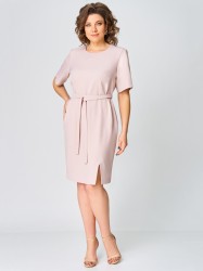 Платье-футляр полуприлегающего силуэта выполнено из поли вискозной ткани. Округлый вырез горловины, обработан обтачкой. По переду застрочены нагрудные вытачки. По низу переда разрез обработан обтачкой. Синка с талевыми вытачками, средним швом и застежкой на потайную тесьму-молнию. Рукав втачной, одношовный длиной ¾. Имеется съемный пояс. Платье без подкладки.