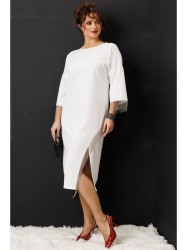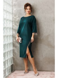 Платье миди — не просто одежда, это заявление о вашем стиле и вкусе. Элегантное праздничное платье прямого силуэта из трикотажного полотна. Ткань не мнется. Благодаря своему крою подойдёт для разных типов фигуры. Оно подчеркнёт вашу индивидуальность и станет отличным дополнением к вашему гардеробу. В нём вы будете чувствовать себя уверенно и комфортно, зная, что выглядите на все сто. Выбирая его, вы выбираете качество, комфорт и стиль. Классическое платье прямого силуэта, со спущенным плечом. По переду идет подрез с разрезом.